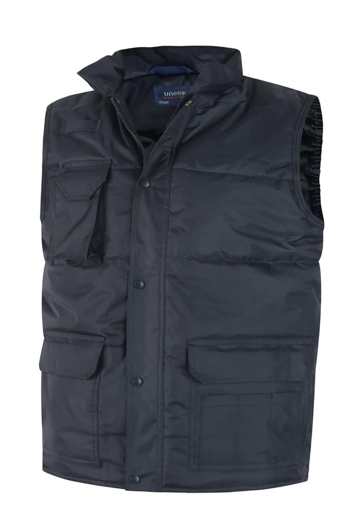 Uneek's Super Pro Bodywarmer is a must-have unisex utility vest with unbeatable warmth and dryness! Its water-repellent, polyester-coated fabric ensures you stay dry, while the insulated lining and extra-large pockets provide the coziness you crave.
